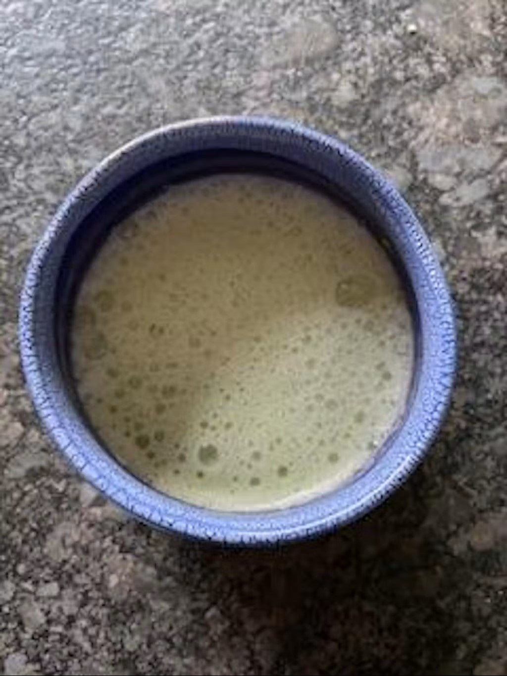 - Contraste saisissant entre le bleu océan du bol et le vert jade du matcha