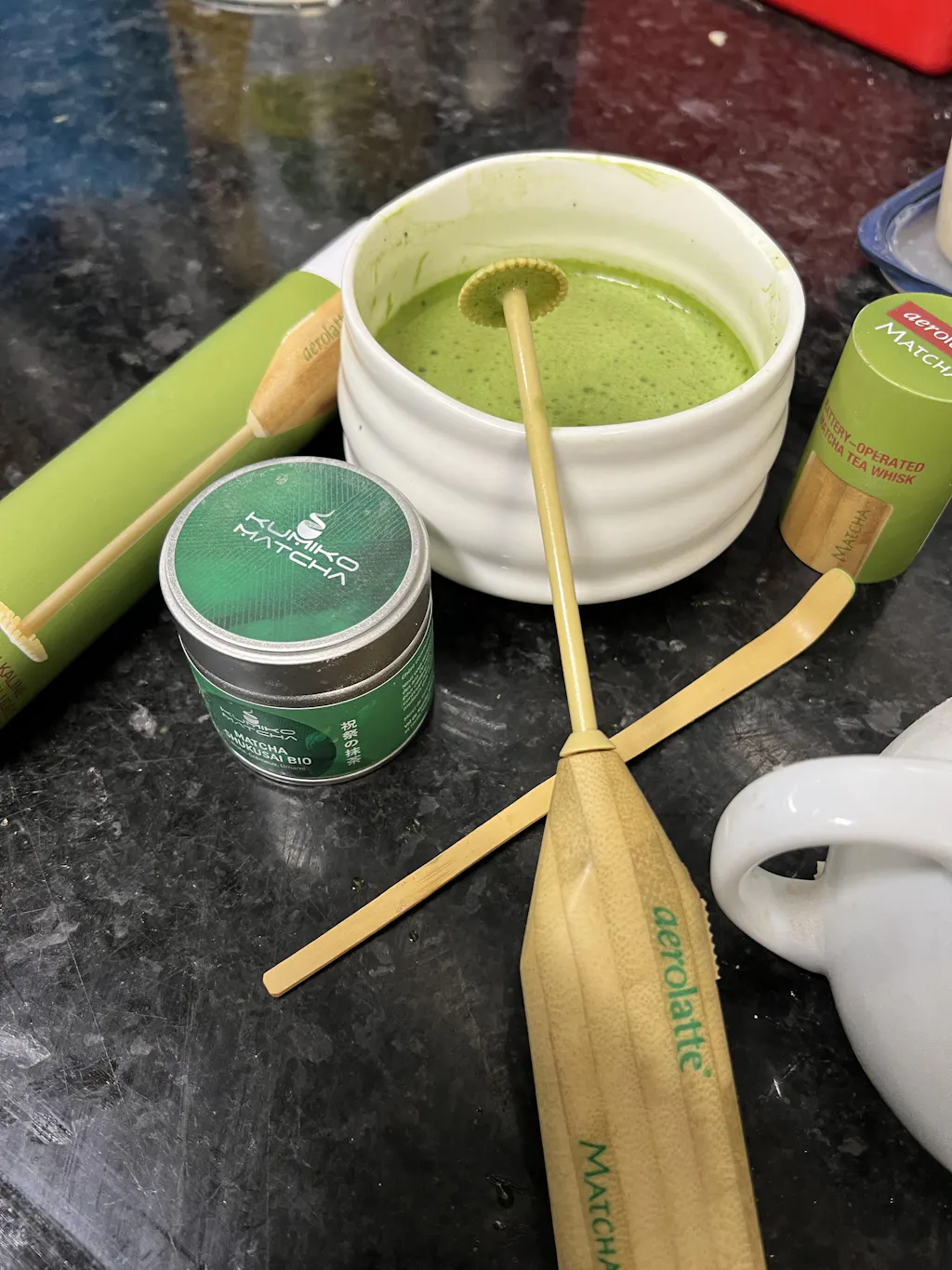 Cet Aérolatte est parfait pour obtenir un Matcha bien mousseux ! Je l’utilise une fois par jour à mon boulot et je garde les chasen pour une utilisation à la maison^^