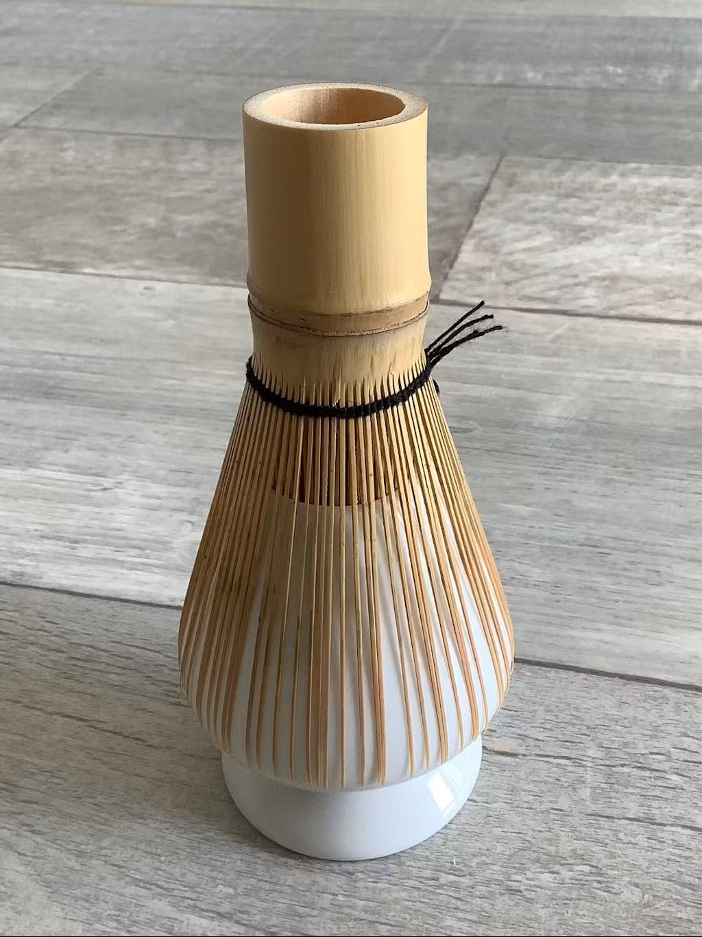 Après chaque préparation de matcha, rincez et séchez délicatement votre chasen, puis placez-le sur le naoshi, les brins vers le bas. Laissez-le sécher naturellement à l’air libre pour qu’il conserve sa forme parfaite.