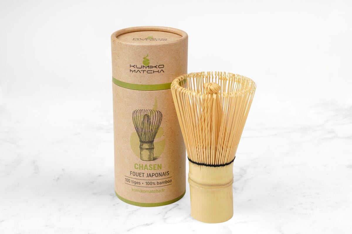 Le fouet à matcha en bambou (appelé chasen en japonais) est fait à la main par des artisans spécialisés à partir d'une seule pièce de bambou, qui est méticuleusement coupée en 100 brins. Un fouet matcha artisanal est un objet d'une grande qualité.